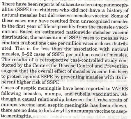 The suggestion by the CDC that SSPE has been eradicated by a substance (vaccine) that causes it is clearly an impossibility.