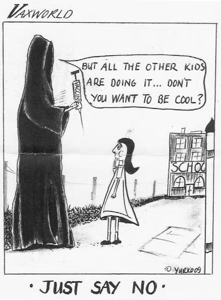 Note: Mugs, tee shirts and bags with Alan Yurko's VaxWorld designs are available here: